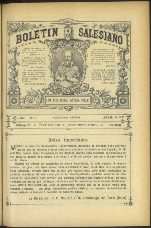 Boletín Salesiano. Abril 1897