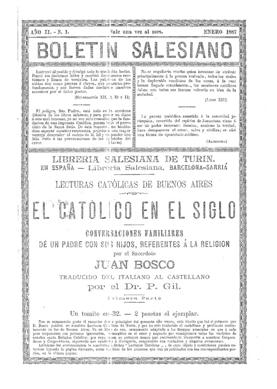 D. Bosco publicó en nuestras Lecturas C¡; ;;.; 'icas de Turin, y que ha sido tracluciclo al castellano y publicado recientemente en las de Buenos Aires. Es un li1il· > de oro, sumamente adaptado á Jos tiempos presentes en que á cada