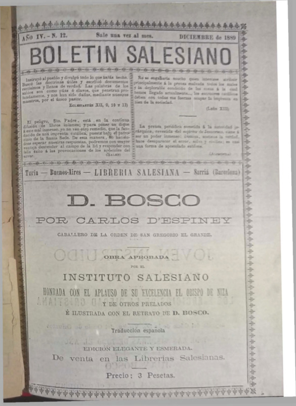 rena Salesiana, y en Italia, á la Librería Salesiana de Turin.