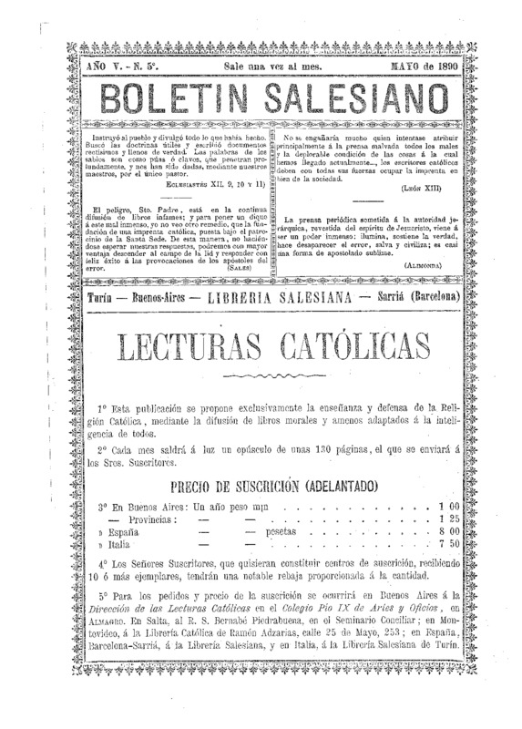 Boletín Salesiano. Mayo 1890