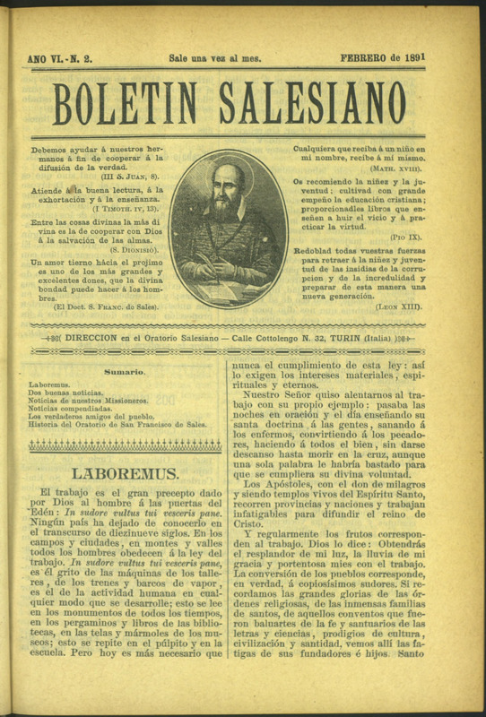 Boletín Salesiano. Febrero 1891