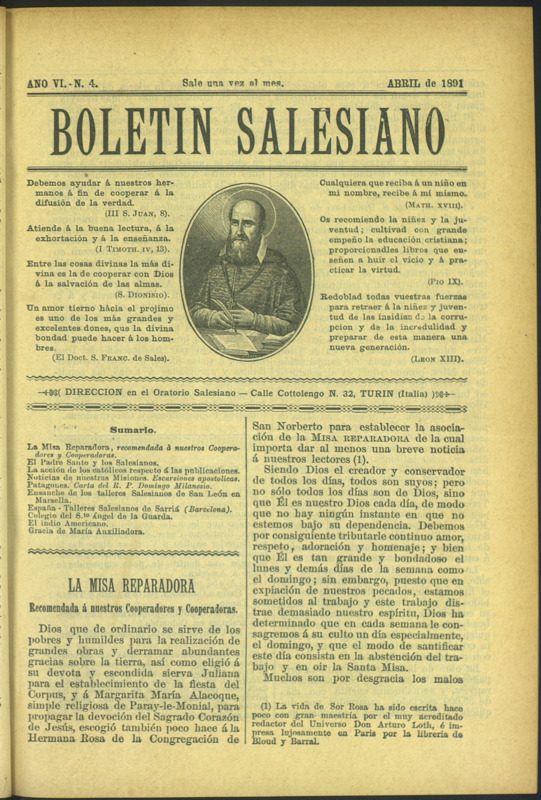D IR E C C IO N en el O ra to rio S a le sia n o — C alle C ottolengo N. 32, T U R IN (Ita lia ) )S tí—