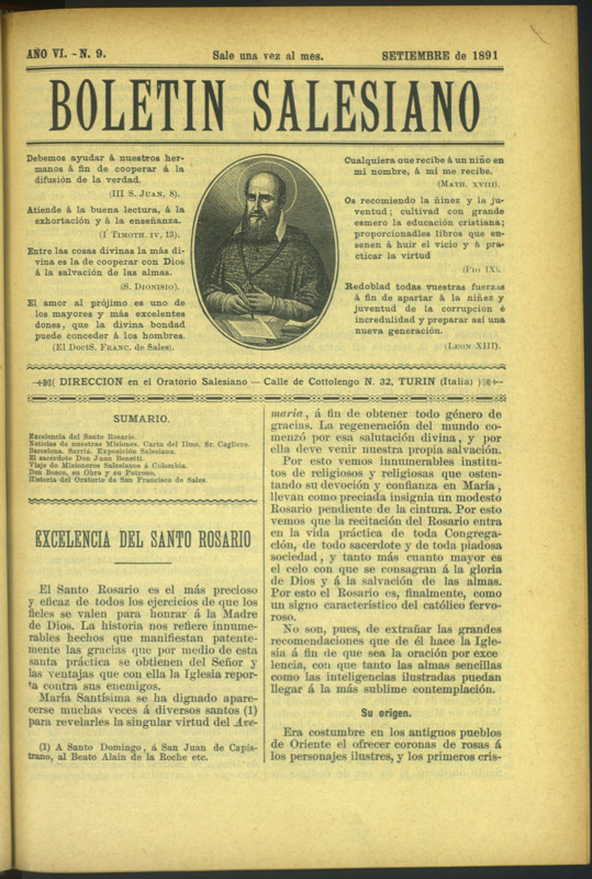 D IR E C C IO N en el Oratorio Salesiano — Calle de Cottolengo N. 32, T U R I N (Ita lia ) )■>§+-