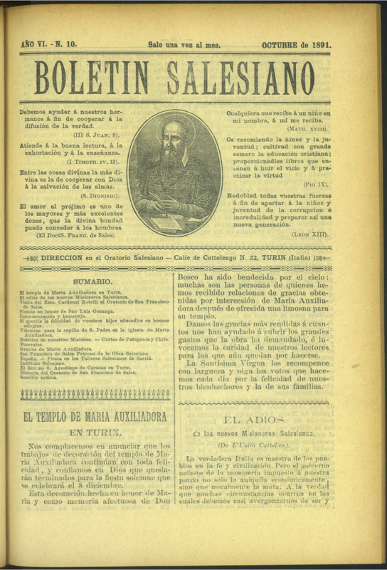 —í ^ ( DIRECCION en el Oratorio Salesiano — Calle de Cottolengo N. 32, T U R IN (Italia) )&|-h-