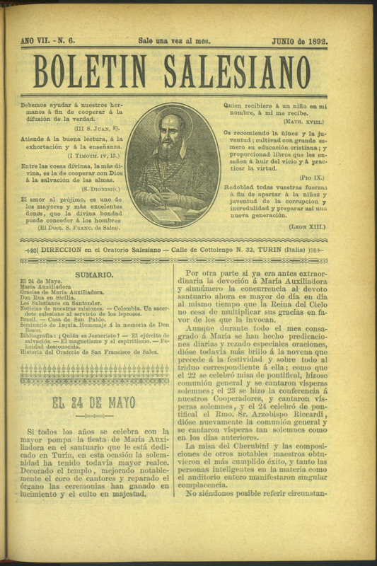 Boletín Salesiano. Junio 1892