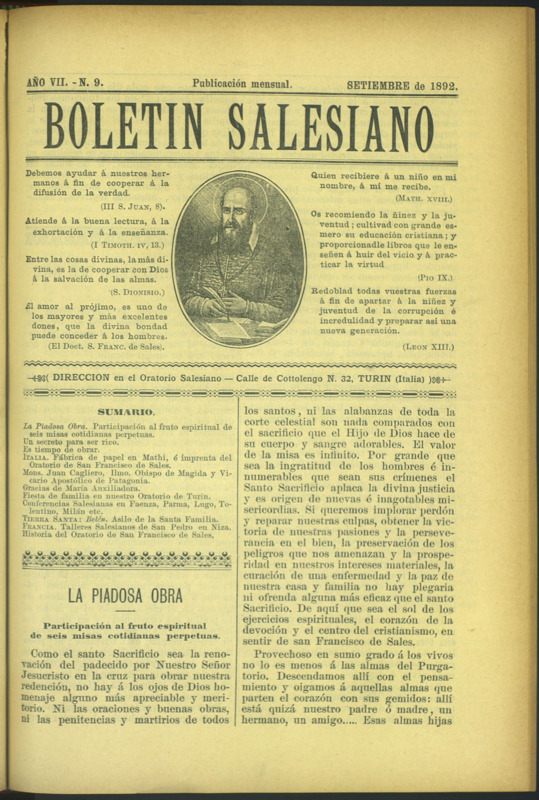 Boletín Salesiano. Septiembre 1892