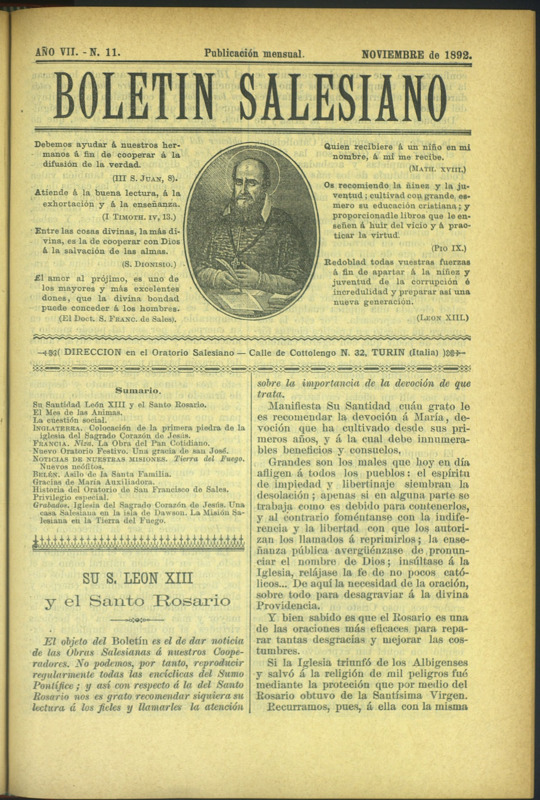 Boletín Salesiano. Noviembre 1892