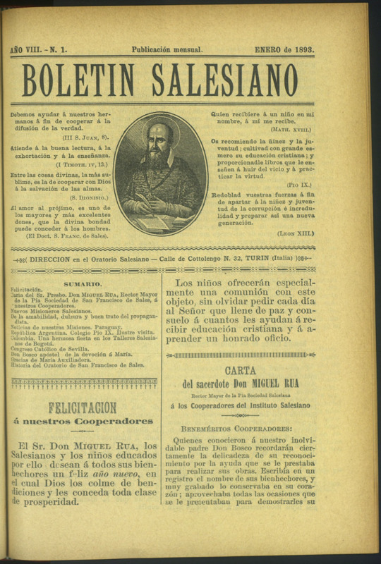 Boletín Salesiano. Enero 1893