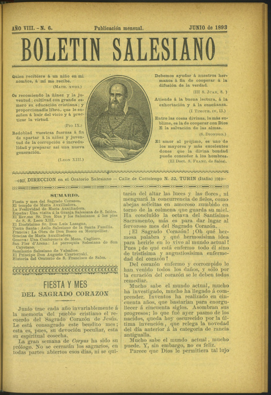 Boletín Salesiano. Junio 1893