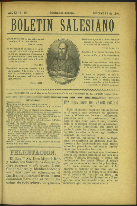 Boletín Salesiano. Diciembre 1894