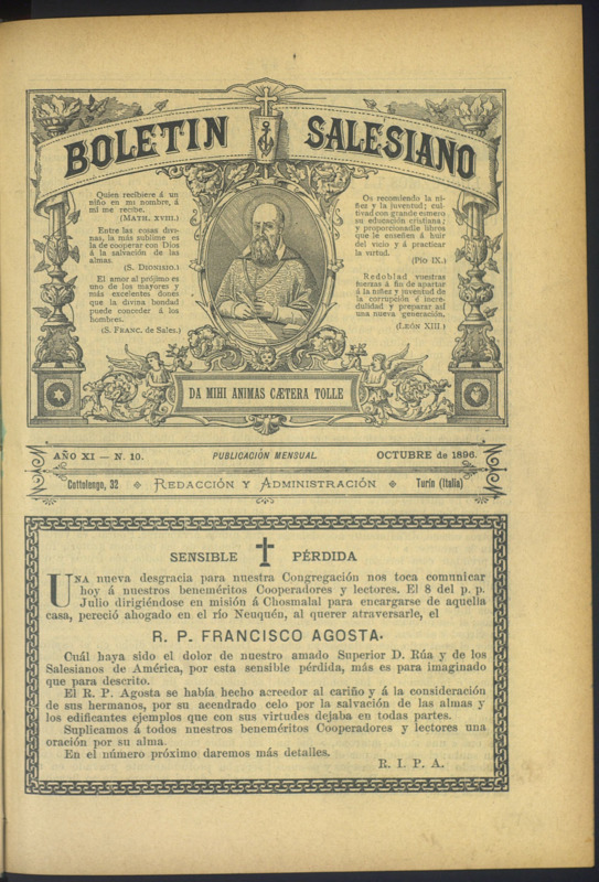 Boletín Salesiano. Octubre 1896