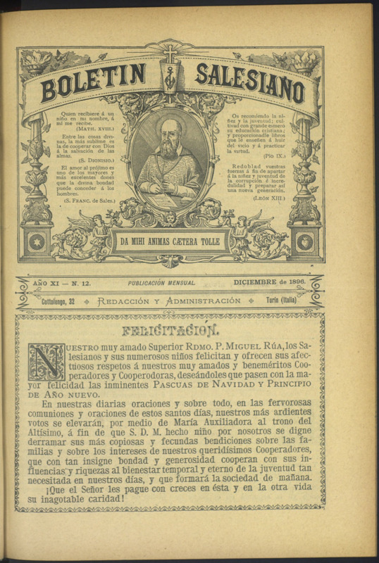 Boletín Salesiano. Diciembre 1896