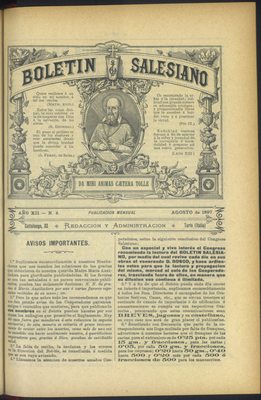 r e c o m i e n d a la l e c t u r a d e l B O L E T IN S A L E S IA N O , p o r m e d io d e l c u a l r e v i v o c a d a d ía e n s u s