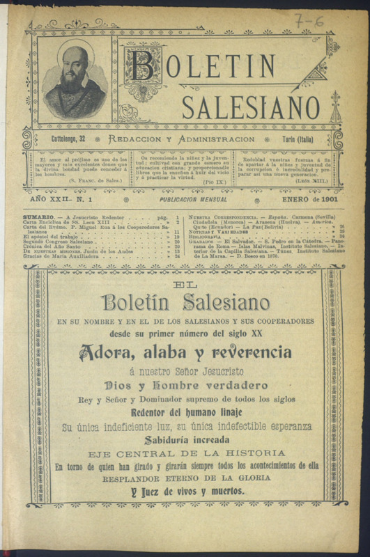 Boletín Salesiano. Enero 1901