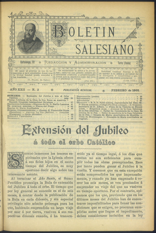 S U M A R I O. — BxtensÍ6n del Jabileo ¿ teto el Orbe