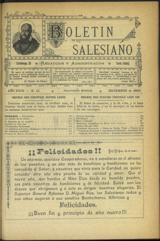 Boletín Salesiano. Diciembre 1902