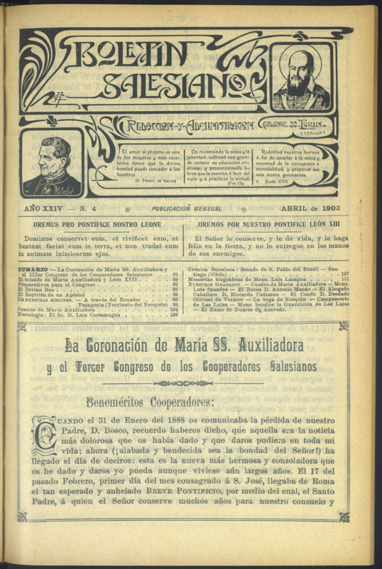 Boletín Salesiano. Abril 1903
