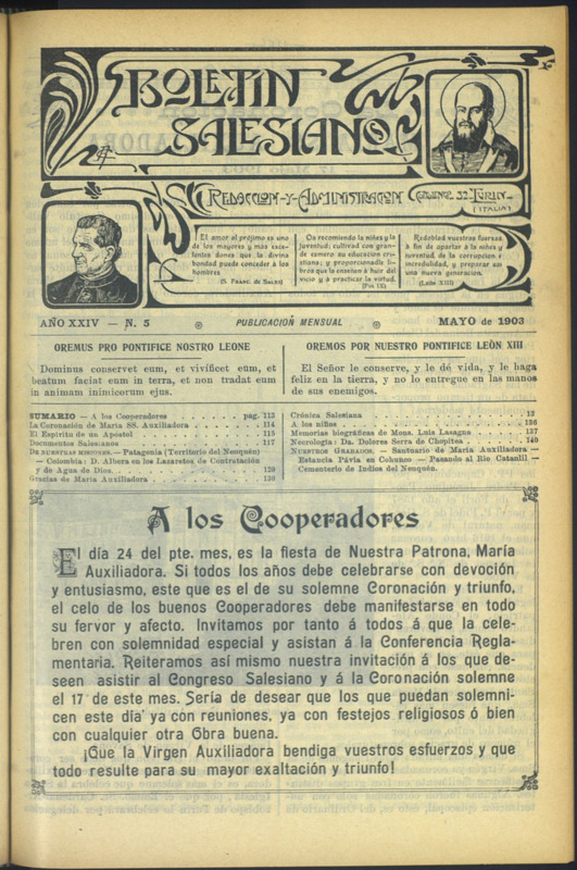 OREMOS POR NUESTRO PONTIFICE LEÓN XIII