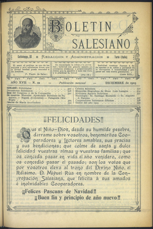 Boletín Salesiano. Diciembre 1903