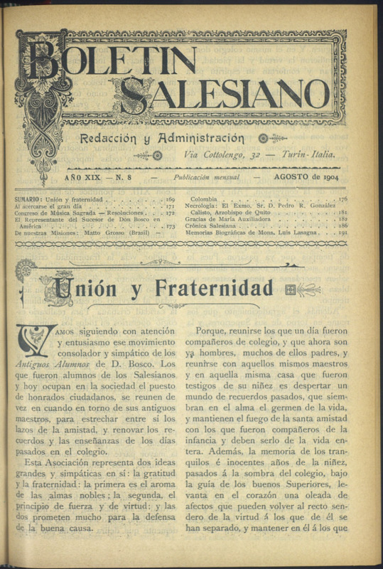Boletín Salesiano. Agosto 1904
