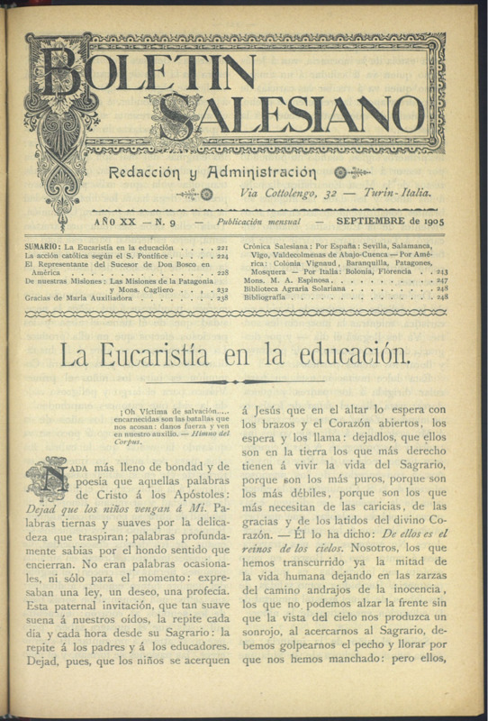 Boletín Salesiano. Septiembre 1905
