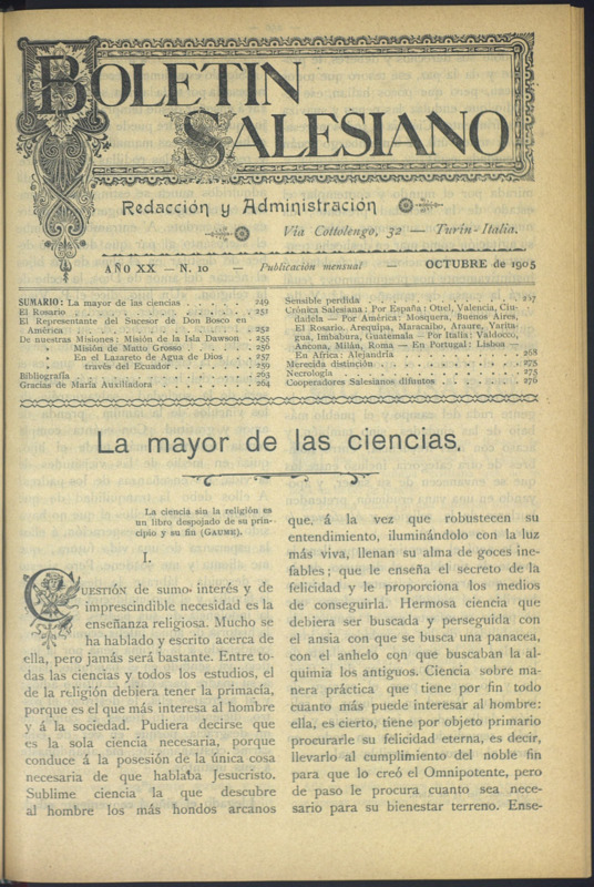 Boletín Salesiano. Octubre 1905