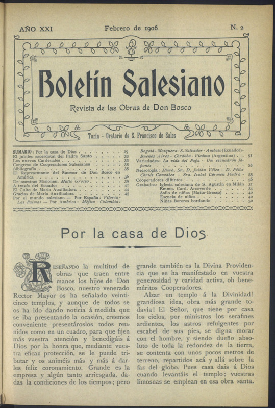 Boletín Salesiano. Febrero 1906