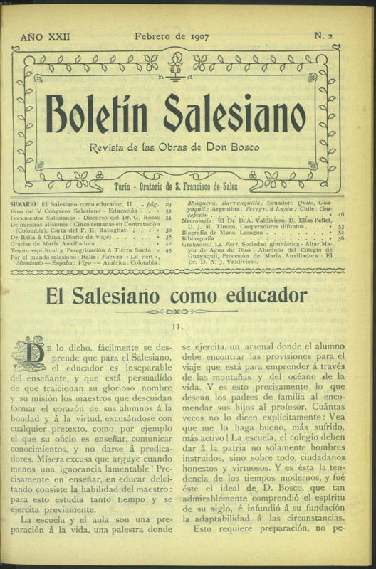 SUMARIO: El Salesiano como educador, II . . pág. 29