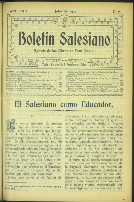 Boletín Salesiano. Julio 1907