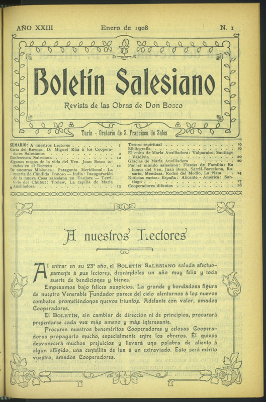 Boletín Salesiano. Enero 1908