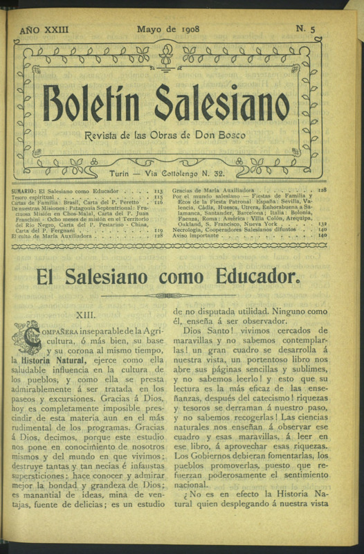 Turín, Tip. Salesiana. (B. S.) — Vía Cottolengo, 3 »