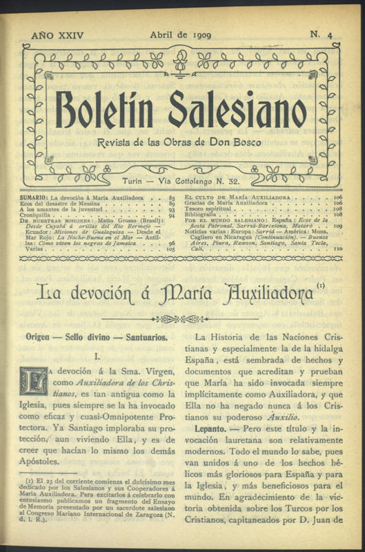 SUMARIO; La devoción á María Auxiliadora . « 85