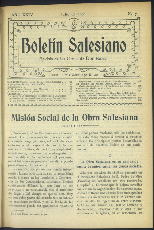 SUMARIO: Misión Social de la Obra Salesiana . . 169