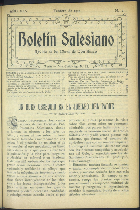 Boletín Salesiano. Febrero 1910