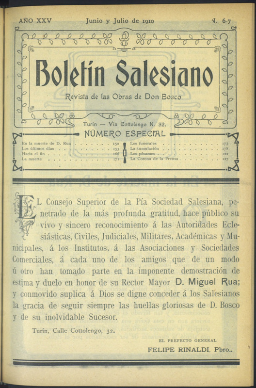 L Consejo Superior de la Pía Sociedad Salesiana, i)enetrado de la más profunda gratitud, hace ])úblico su