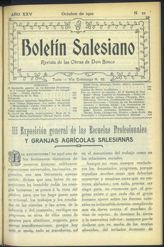 Boletín Salesiano. Octubre 1910