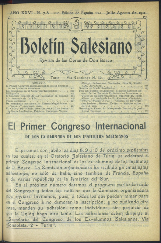 Boletín Salesiano. Julio - agosto 1911