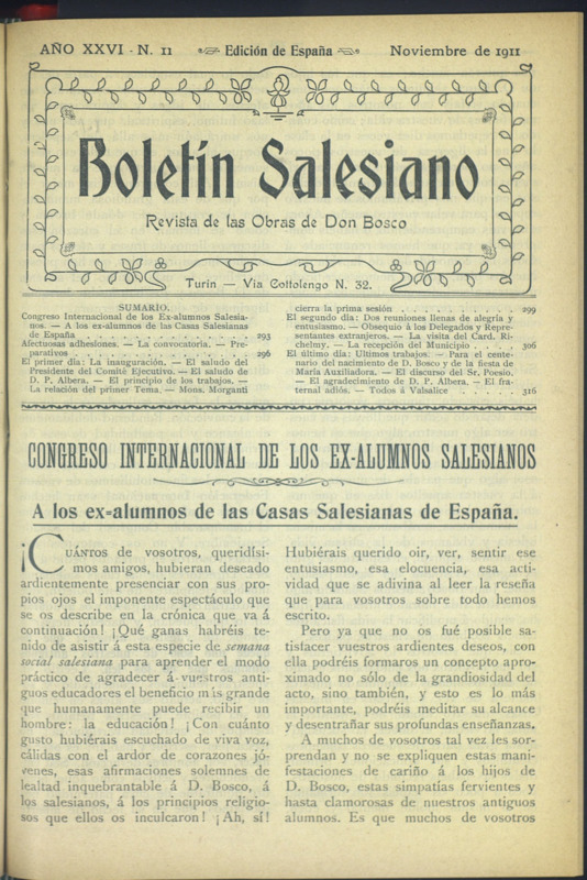 Boletín Salesiano. Noviembre 1911