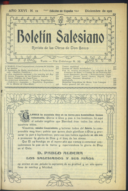 Boletín Salesiano. Diciembre 1911