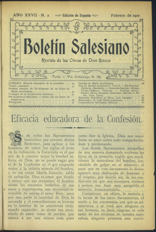 Boletín Salesiano. Febrero 1912
