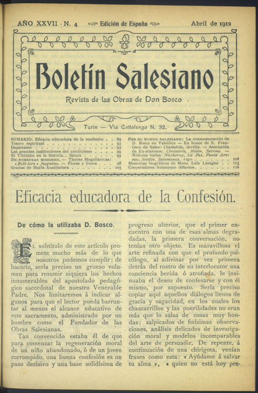 Boletín Salesiano. Abril 1912