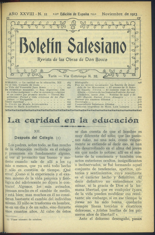 Boletín Salesiano. Noviembre 1913