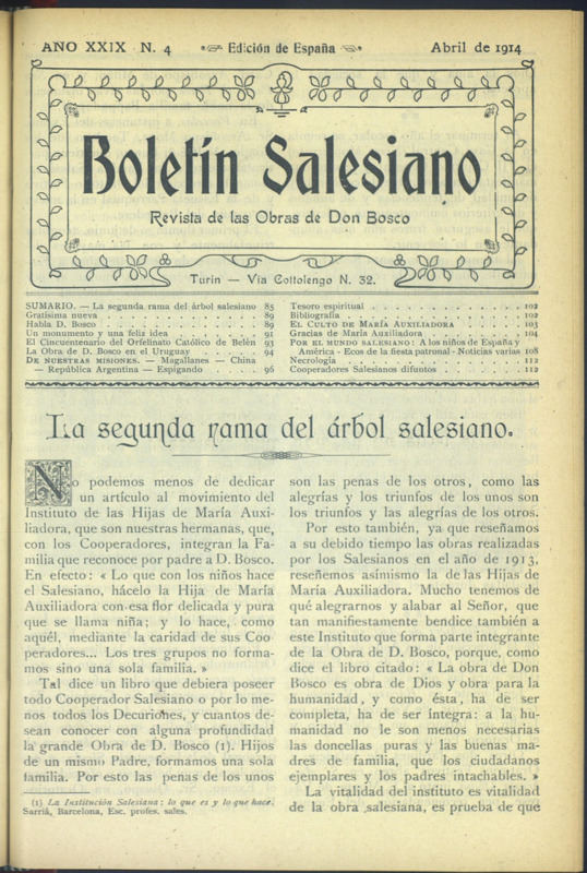 Boletín Salesiano. Abril 1914