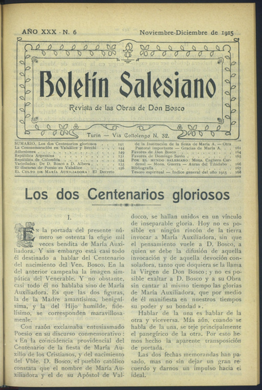 La Conmemoración Solemne en Turín y Castelnuovo, 144: en Argentina y Colombia. 151, 154.