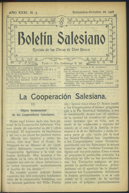 Boletín Salesiano. Septiembre - octubre 1916