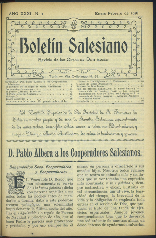 SUM ARIO. Don Pablo Albora a los Cooperadores