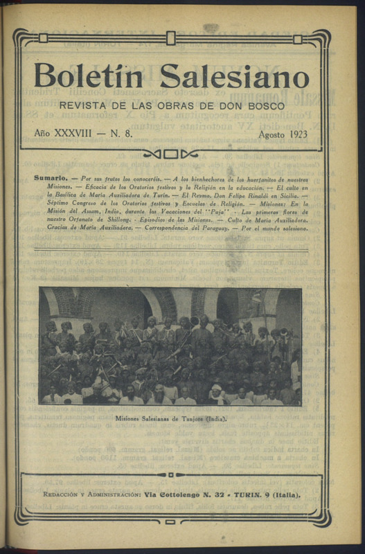 Boletín Salesiano. Agosto 1923