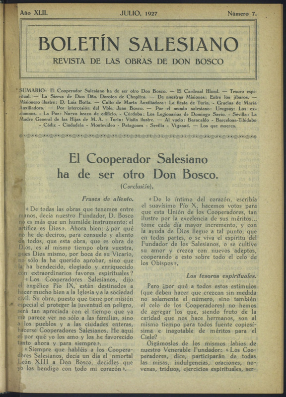 * S U M A R IO : El C ooperador Salesiano ha de ser olro Don Bosco. — El C ardenal Hlond. — Tesoro espi
