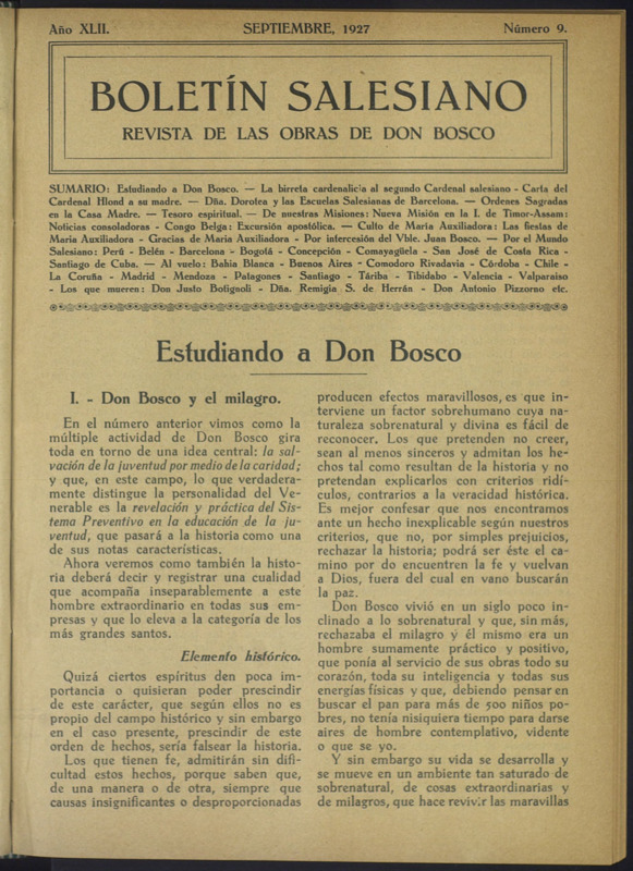 SU M A R IO : Estudiando a Don Bosco. — La birreta cardenalicia al segundo Cardenal salesiano - C arta del