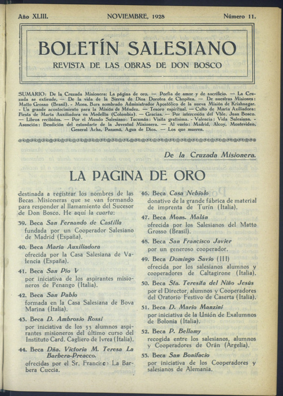 Boletín Salesiano. Noviembre 1928